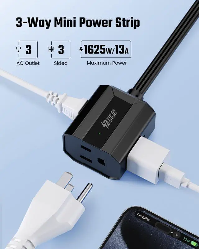 SUPERDANNY 3-OUTLET MINI EXTENSION CORD