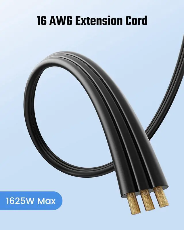 The extension cord handles power up to 1625W/13A, capable of powering most home appliances and all electronic devices.