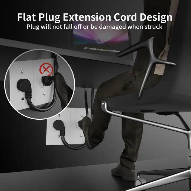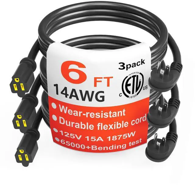 HUANCHAIN 14 Gauge 6 Feet (3 Pack) Flat Plug Extension Cord Black Indoor Outdoor, Heavy Duty 3 Prong Grounded Low Profile Extension Wire Flexible, 15A 1875W 125V 14AWG SJTW, ETL Listed