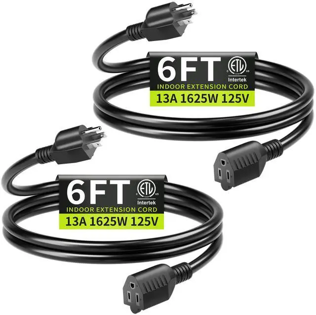 This 16AWG 6ft-2pc heavy duty extension cord is the ideal solution for home and office. Whether you need a stable power source for vacuum cleaner, chandelier or TV, this flexible black extension cord will meet your needs. Featuring high quality pure copper conductors to ensure safe and reliable use, the NEMA 5-15P/R configuration makes for a strong connection, making it an indispensable addition to your life