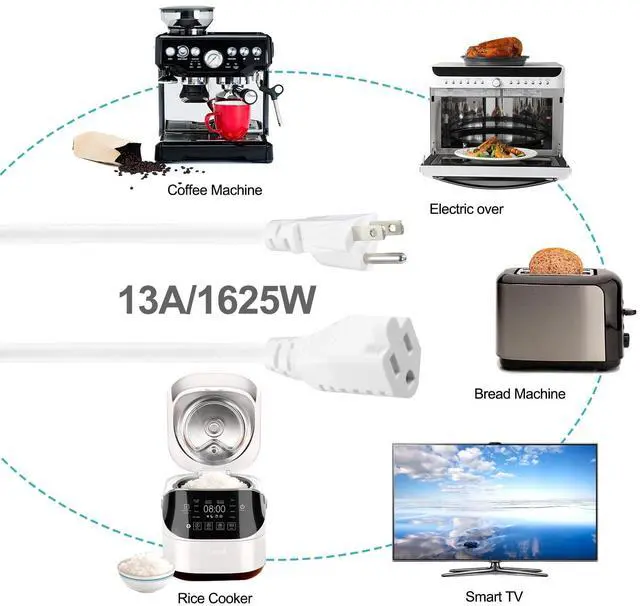 When your kitchen appliance's power cord is too short to connect to a high outlet, a 6-inch cord will do the trick and give your appliance a little extra length. The standard NEMA 5-15R is compatible not only with 2-socket power cables but also with 3-socket power cables.