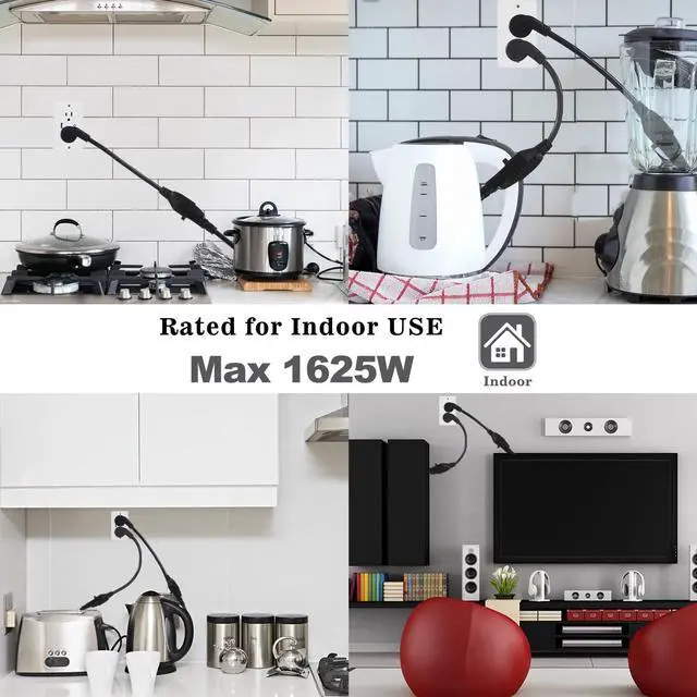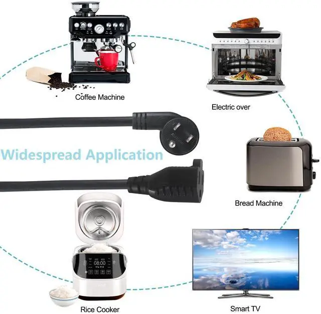 When your kitchen appliance's power cord is too short to connect to a high outlet, a 6-inch short extension cord will do the trick and give your appliance a little extra length. The standard NEMA 5-15R is compatible not only with 2-socket power cables but also with 3-socket power cables