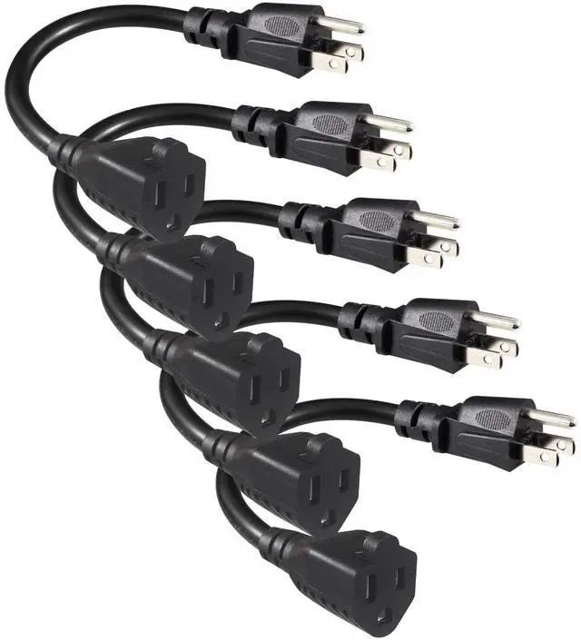 ![Alt view image 4 of 7 - [5 Pack] Black Short Power Extension Cord - 6inch 3 Prong Mini Indoor Grounded Extension Cord,16AWG Small Electrical AC Extension Cord for Outlet Saver,Rated for 13AMP Home Appliance Extender Lead](https://c1.neweggimages.com/productimage/nb640/C3H4D2512170GQXXUC0.jpg)