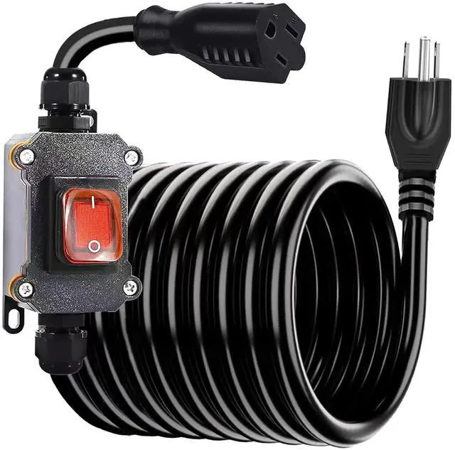 Outdoor 3 Prong Extension Cord with Switch On/Off Waterproof Inline Cord Switch