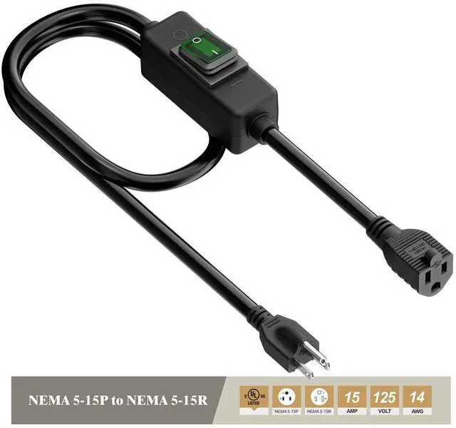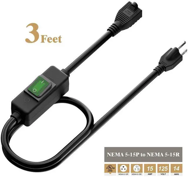 .Degree Nema 5-15P 3 Prong Male to Nema 5-15R 3 Prong Female AC receptacle