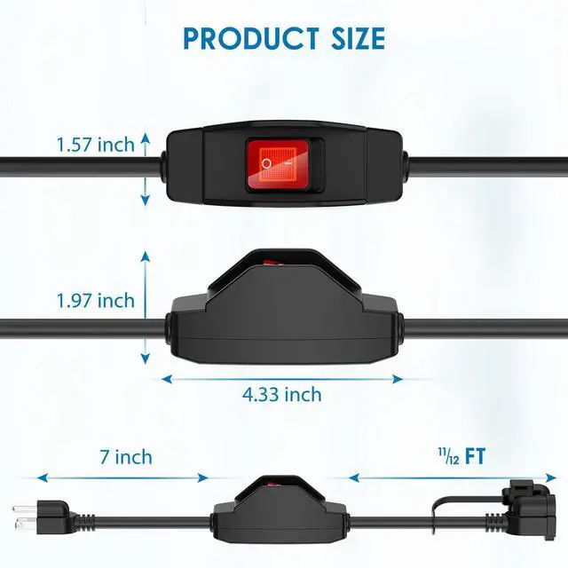 The extension cord is equipped with powerful 15A 125V NEMA 5-15P to NEMA 5-15R grounded outlet plugs. It‘s compatible with a wide range of standard electrical equipment, including string lights, lamps, printers, patio fountain, RV fans and more.
