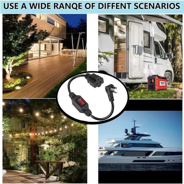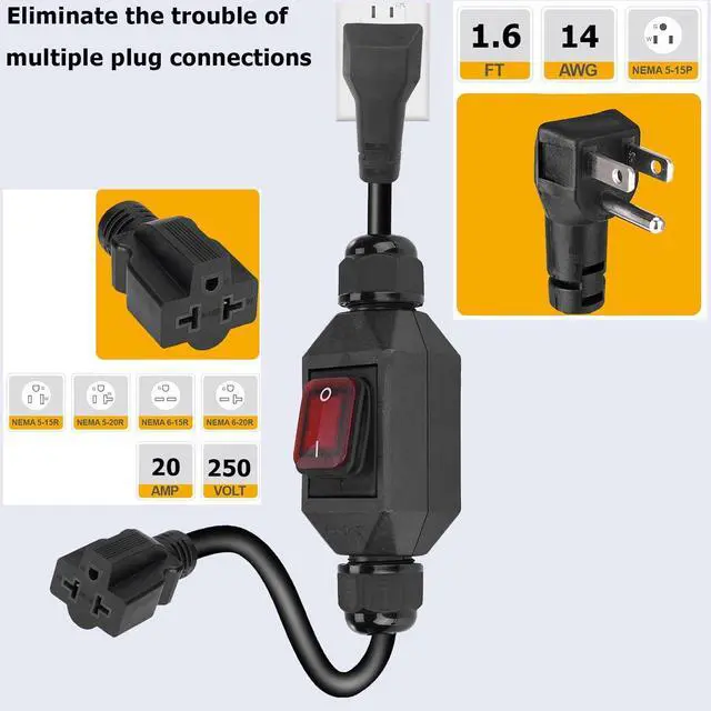 URANT Heavy Duty SJTW 14AWG Outdoor Waterproof Extension Cord Switch,Online On/Off Switch Extension Cord,IP65 Waterproof,Max. 20A 125V 4-in-1 T-Blade Female,1.5Ft