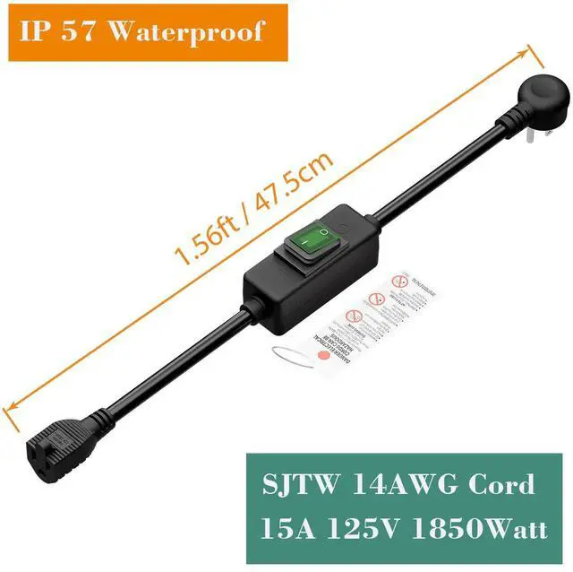. IP57 Degree Right Angled Nema 5-15P 3 Prong Male to Nema 5-15R 3 Prong Female AC receptacle