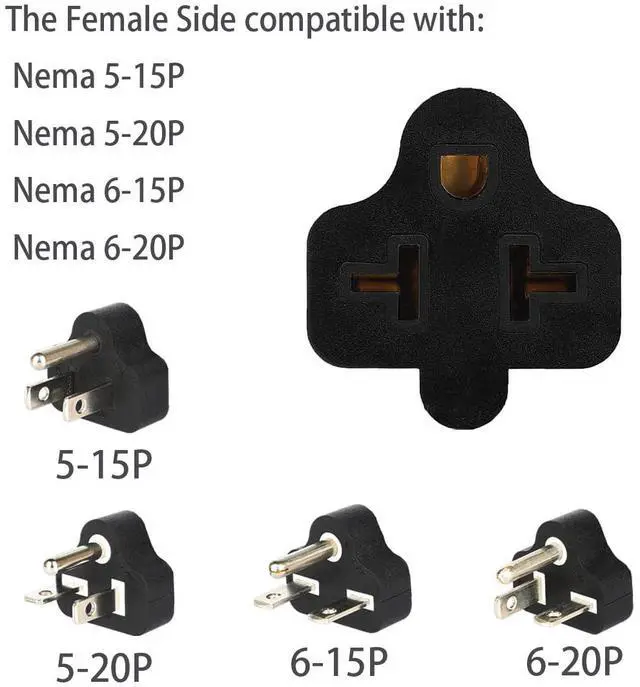 . The female T-Blade socket compatible with Nema 5-15/5-20/6-15/6-20 Four-In-One