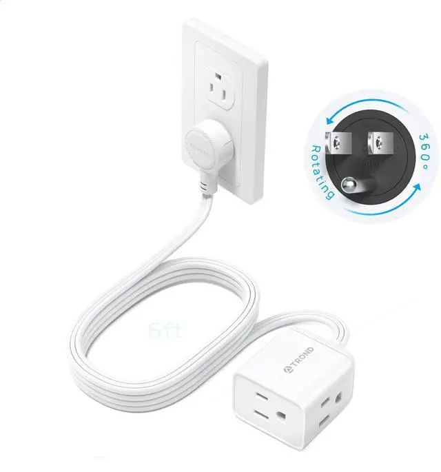 Merchant VideoTROND rotating flat plug extension cord 6 ft allows you to twist the plug in any direction and get power easily. Maximum power rating of 1625 W.