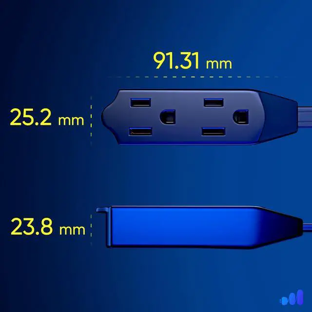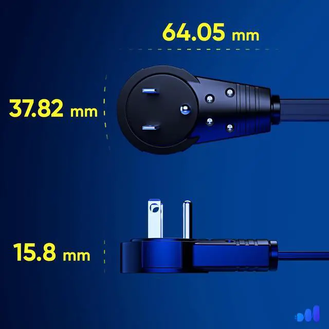 Maximm 360° Rotating Flat Plug Extension Cord/Wire The rotating extension cords are unique for their sleek and adaptable design. They are versatile due to its rotating plug providing angular flexibility to a full 360 degrees, the prongs rotate in the plug so you can aim the cord in any direction you wish without blocking the other outlets. Clutter ControlMaximm Solves those power problems with ease using the Flat Plug Rotating Extension Cord. It has a space-saving design to eliminate bulky or awkward cords. Since it hugs the wall nicely and extends only a half an inch from the wall bending to a 90-degree angle - so it doesn't poke into adjacent objects - you can place your desk, couch, bookshelf etc, right up against the wall freeing up some space. Quality construction The extension cord is UL listed and adheres to industry standards for safety and quality assurance for an added peace of mind. Specification Cord length: 12 Inches - length does not include two ends Connector 1: 1 NEMA 5-15 male (grounded AC plug) Connector 2: 1 NEMA 5-15 female (grounded AC socket) Wire gauge: 14AWG Max. power rating: 1875 watts (15 amps at 125 volts).