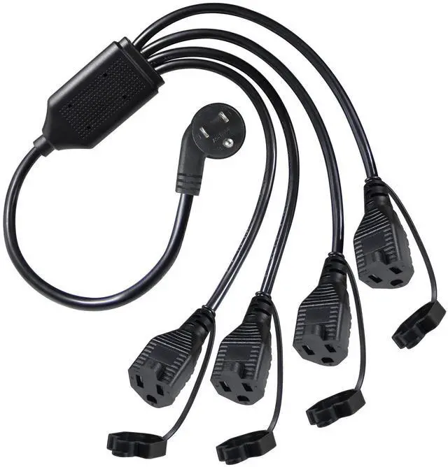 - Each outlet plug comes with a safety cover that will protect against rain, snow, and dust. These splitter cords are great for powering summer patio lighting, Christmas decorations, garden lights, water fountains, and more.