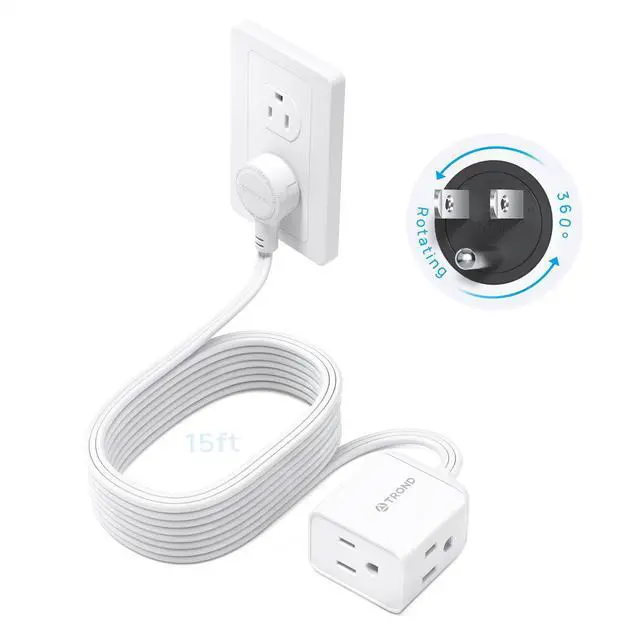 Merchant VideoThe 15ft extension cord with rotating plug allows you to twist the plug in any direction and get powered easily. Maximum power rating of 1625W.