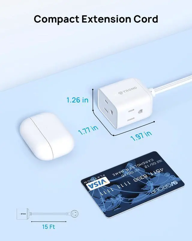 The space-saving extension cord is super compact for household or travel use and the included Velcro tie helps with cable management.