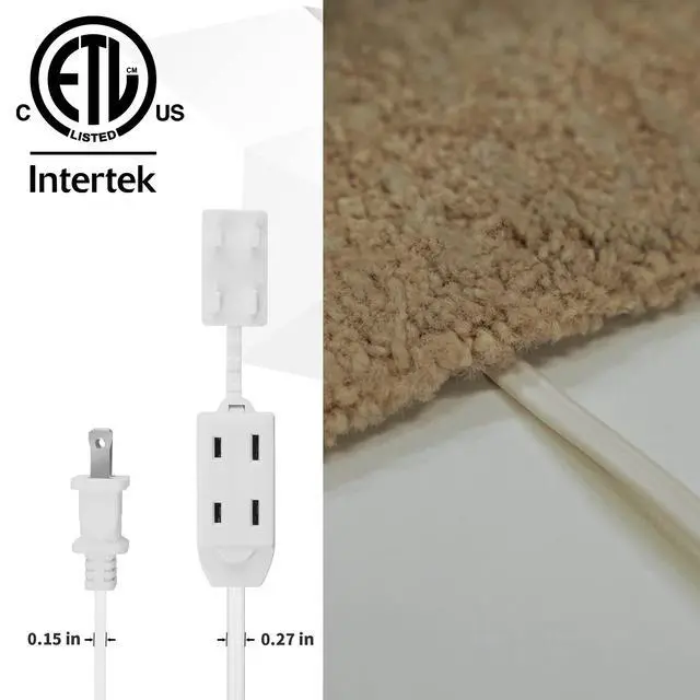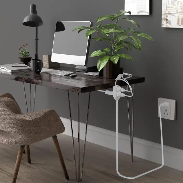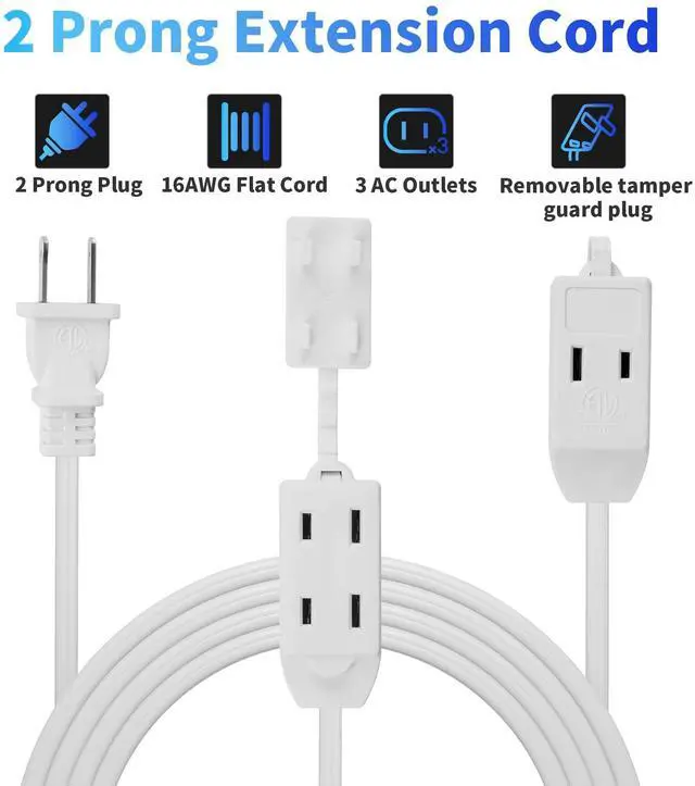 A NEMA 1-15P polarized power plug and 3 NEMA 1-15R polarized receptacles..