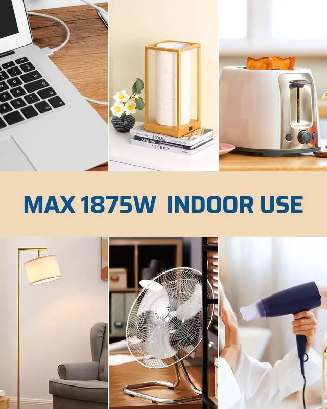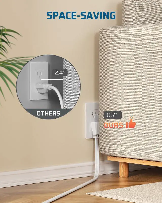 Crafted with quality materials, it features a flat plug design for tight spaces, 14-gauge copper conductors, and a slim profile for discreet placement.