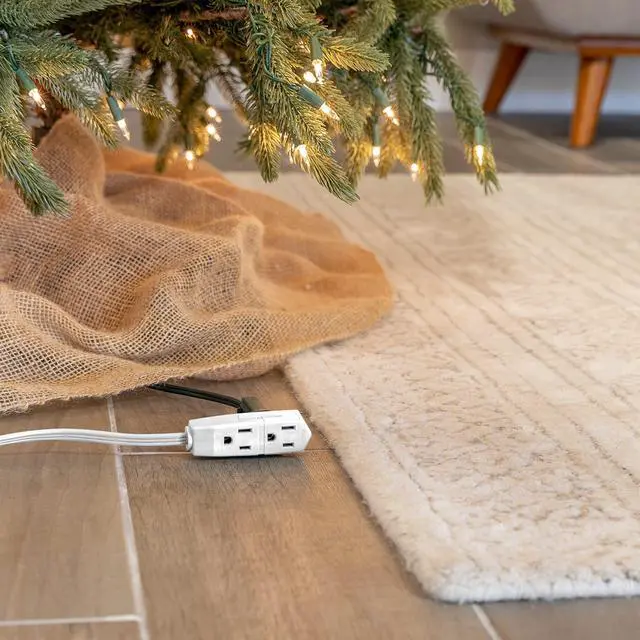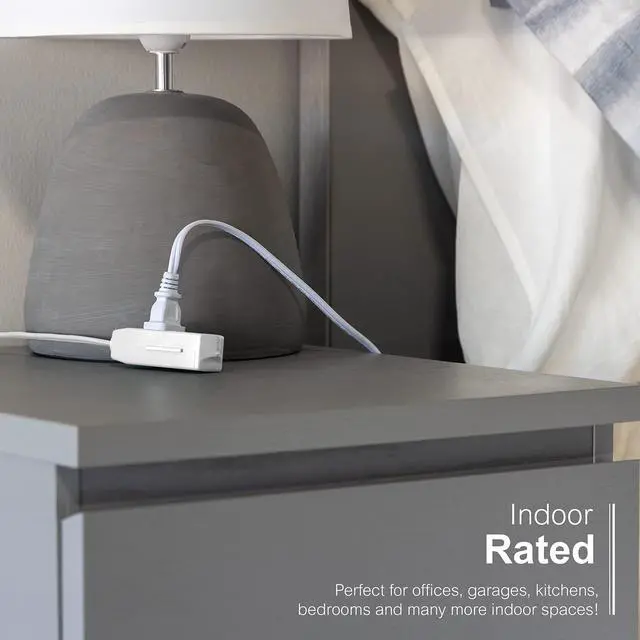 Keep furniture and media close to the wall with the low-profile flat plug at the end of this outlet extender. The angled plug allows for this extension cord to be plugged into the receptacle without blocking the other outlet.