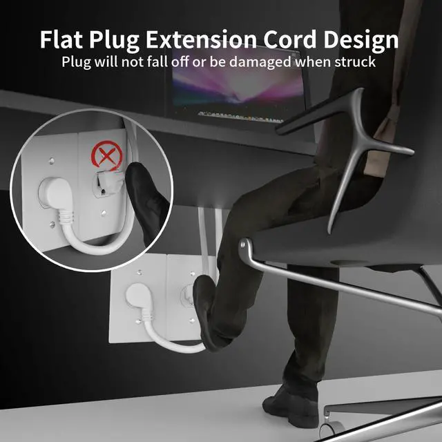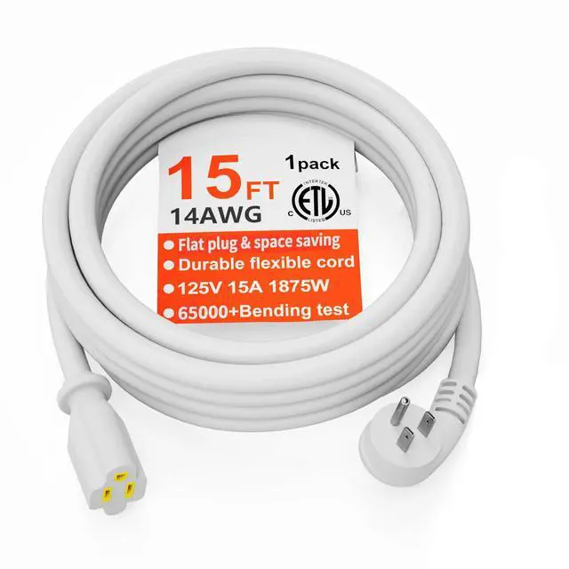 HUANCHAIN 14 Gauge 15 FT Flat Plug Extension Cord White Indoor Outdoor, Heavy Duty 3 Prong Grounded Low Profile Extension Wire Flexible, 15A 1875W 125V 14AWG SJTW, ETL Listed