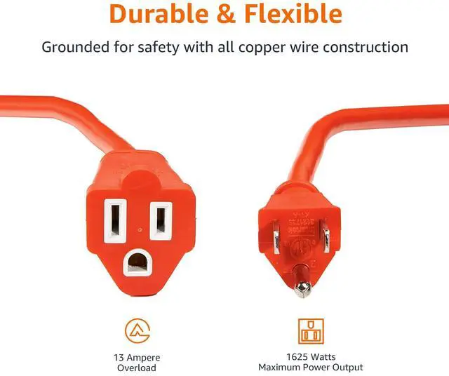 Featuring durable, flexible construction with male and female connectors--Rated* 13 Amps, 1625 Watts and 125 VAC (*100 foot: 10 Amps, 1250 Watts).