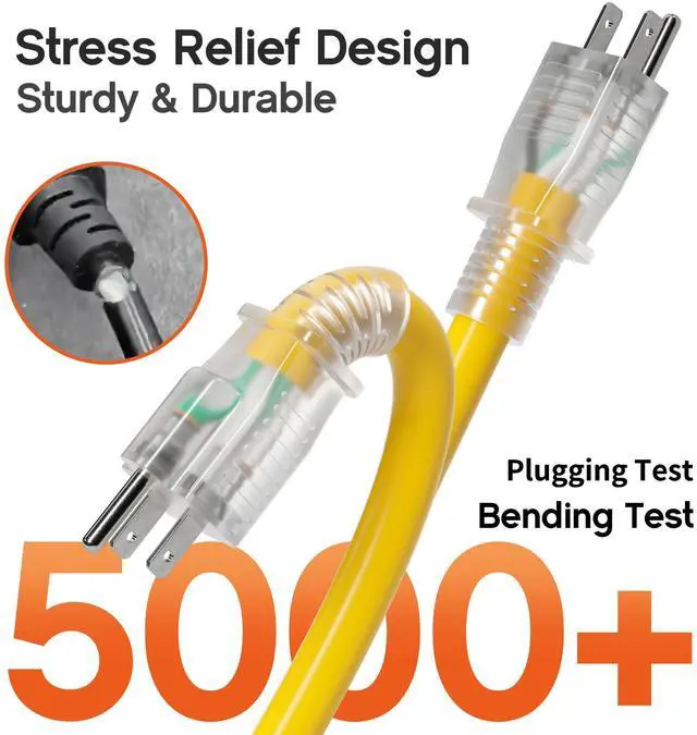 Safe & Practical: The bright jacket color of the 10/3 extension cord with multiple outlets outdoor makes it easy to identify and locate; Outdoor extension cord waterproof withstands 5000+ bends and 1500V high voltage for reliable durability and safety