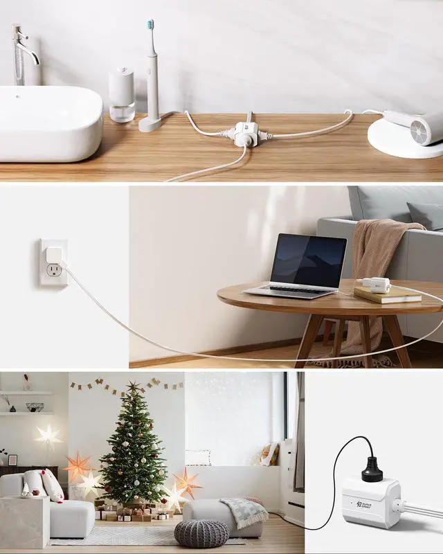 3-Way Outlet Short Extension Cord with Right Angled Plug Provide Power from Different Distance