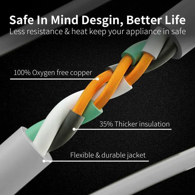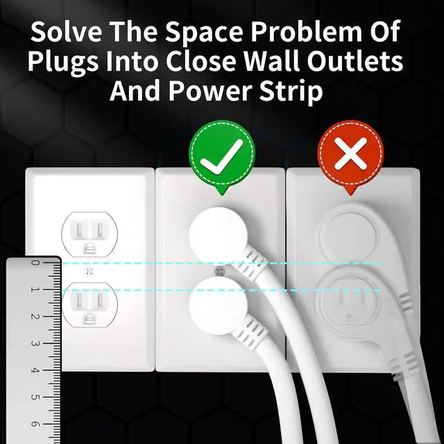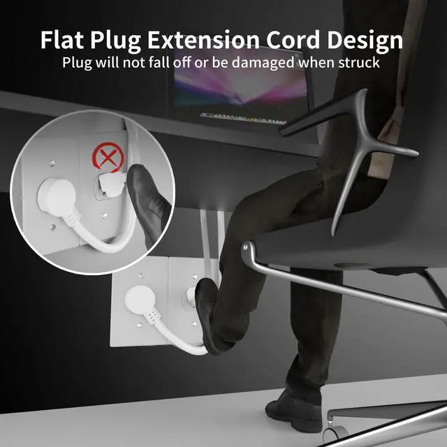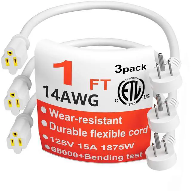 HUANCHAIN 14 Gauge 1 Feet (3 Pack) Flat Plug Extension Cord White Indoor Outdoor, Heavy Duty 3 Prong Grounded Low Profile Extension Wire Flexible, 15A 1875W 125V 14AWG SJTW, ETL Listed