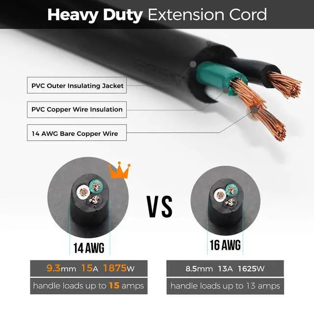 Thicker 14 AWG extension wire handles higher amperage and wattage, reducing overheating risk for safer use