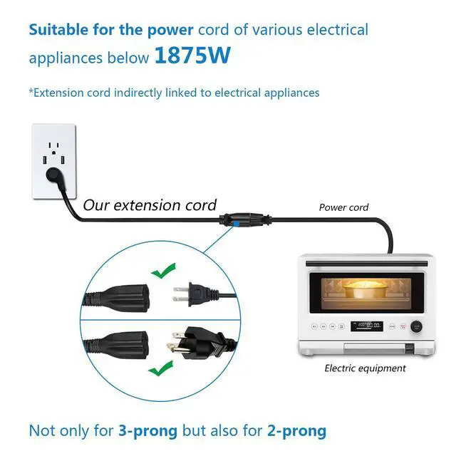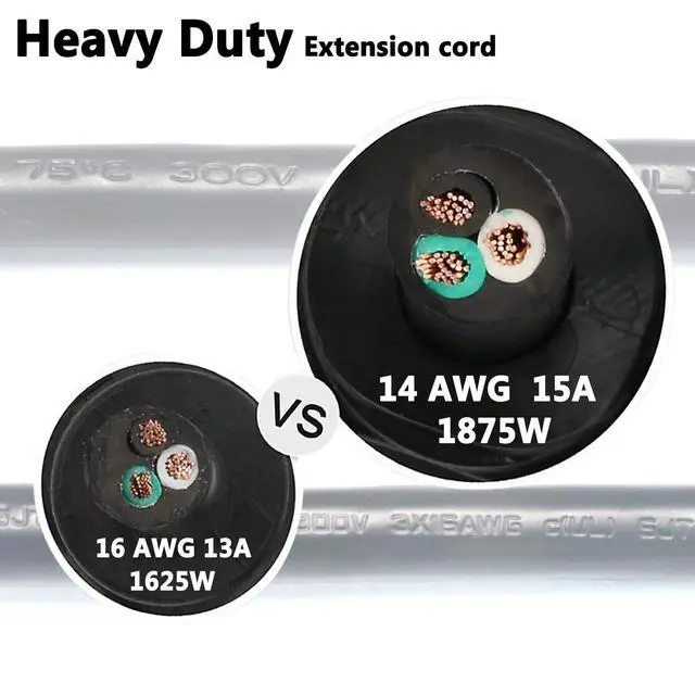 Thicker 14 AWG extension wire handles higher amperage and wattage, reducing overheating risk for safer use.