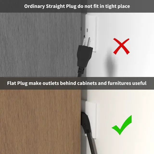 The low profile extension cord is specifically designed for outlets located on furniture, shelves, desks, or any place where a standard cord is difficult to use due to its proximity to a wall.