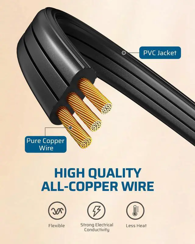 • [Flat Wire] Unlike bulky round cables, the flat design allows the cord to glide smoothly under carpets or along walls, making it easy to hide and helping maintain a clean, streamlined look in any room