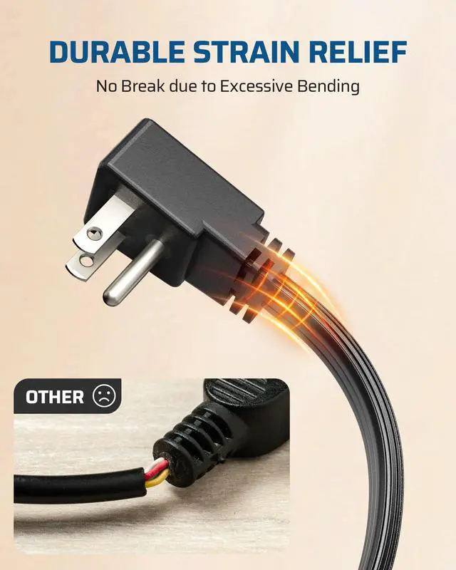 • [High Performance] Built with 14AWG pure copper wire, a reinforced plug, and a durable all-plastic design, this power cord supports up to 125V/15A/1875W, ideal for handling high-power household appliances and office equipment