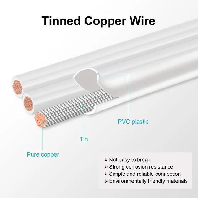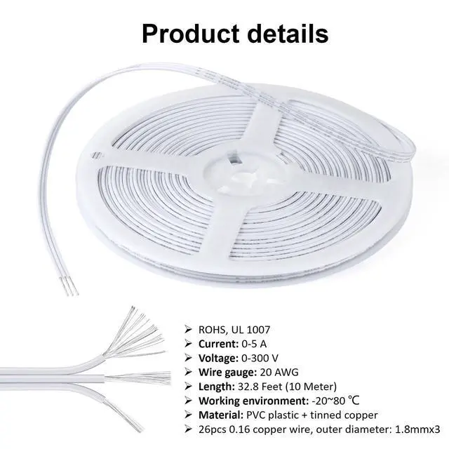 These 3 pin led wires are made of high purity oxygen-free tinned copper and high quality PVC for high conductivity, low resistance and corrosion resistance.