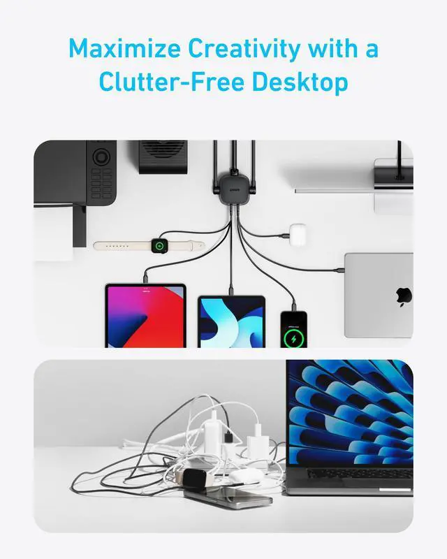 Clear the Clutter: Transform your desk into a haven of creativity with this clutter-free charging solution, designed to organize your devices and save precious space.