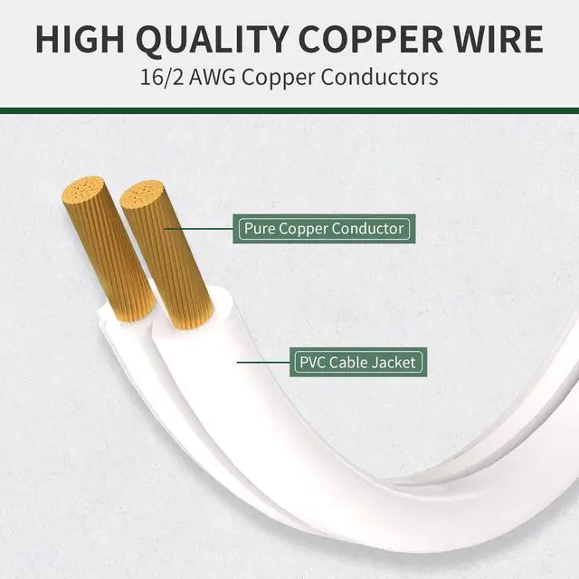 This extension cord features 16/2 AWG copper conductors, flat cable can pass through smaller spaces.