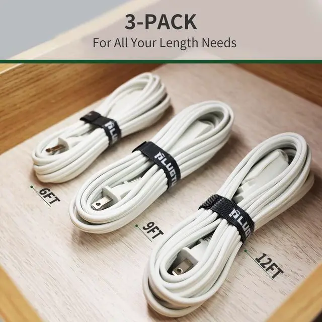 PLUGTUL 3-Pack Indoor White Extension Cord With 3-Outlets(6/9/12FT)