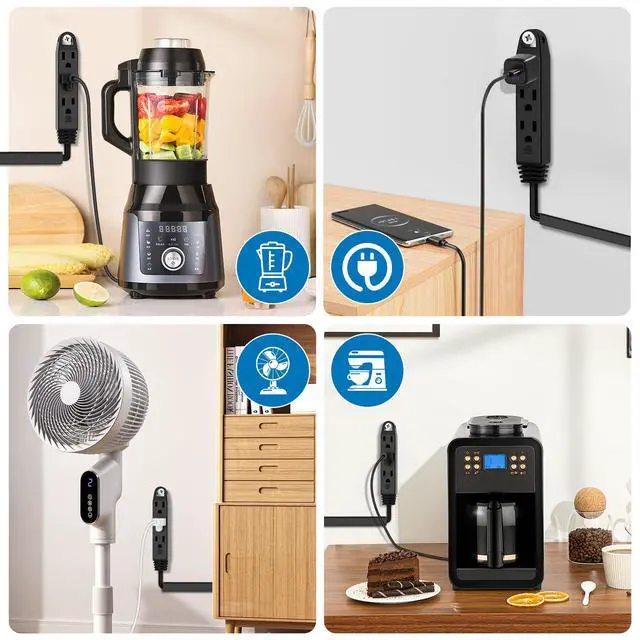 6 Grounded Outlets - giving you the option to plug in multiple devices or appliances thus having the same extension to 6 devices at once.