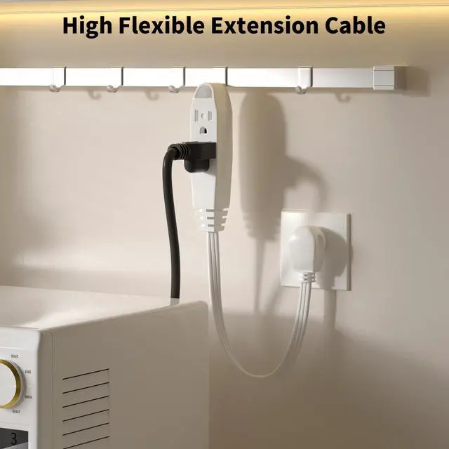 Simple & Practical - Easily convert one outlet into three outlets to plug in more electronics at one, convenient location. 1 Feet extension cord is perfect for your desk lamp, portable fan, laptop, phone charger, vacuum cleaner, alarm clock and other household Electronics that need a little extra length.