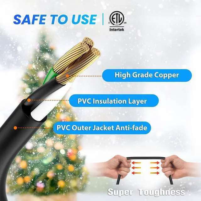 31FT Christmas Lights Outdoor Extension Cord with Mutil Outlets, ETL Listed Heavy Duty Electrical Cord with Protective Covers, Weatherproof Extension Cord for Outside, 16AWG/1625W, Black