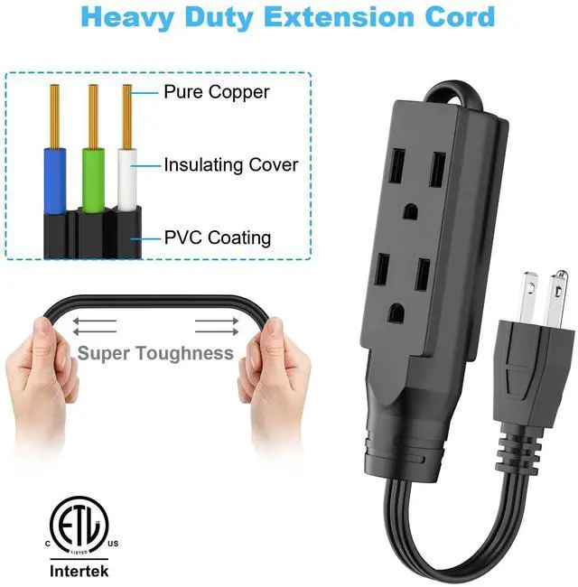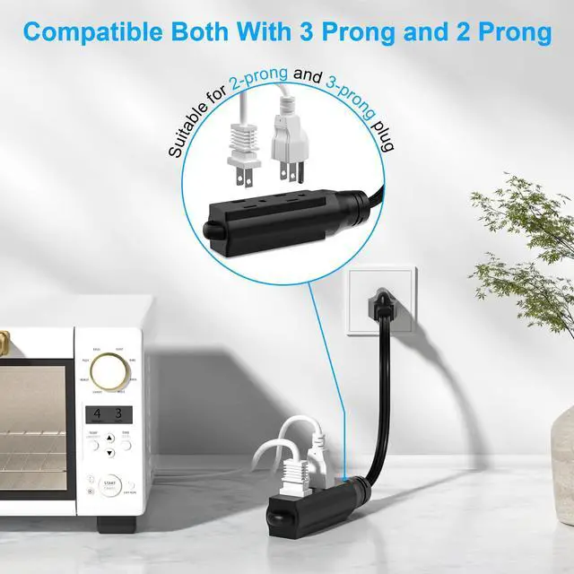 HICITY 3-Prong Short Power Extension Cord Plug Small Power Bar