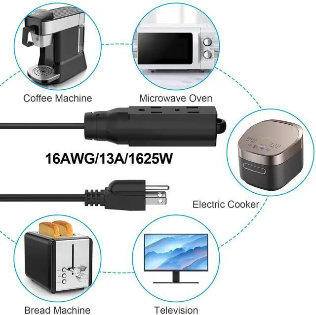 This extension cord is designed for indoor use, providing 3 additional outlets for your home, office, or dorm room. With a 16AWG wire gauge and a 13A/1625W rating, it offers reliable power delivery for your small appliances and electronics. The compact 8-inch length helps minimize clutter and tripping hazards.