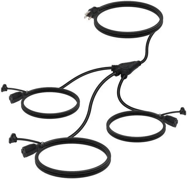 This outdoor outlet splitter is featuring a slip resistant design and vinyl (PVC) covering that protects against water, dirt, dust, abrasion, and direct sunlight.