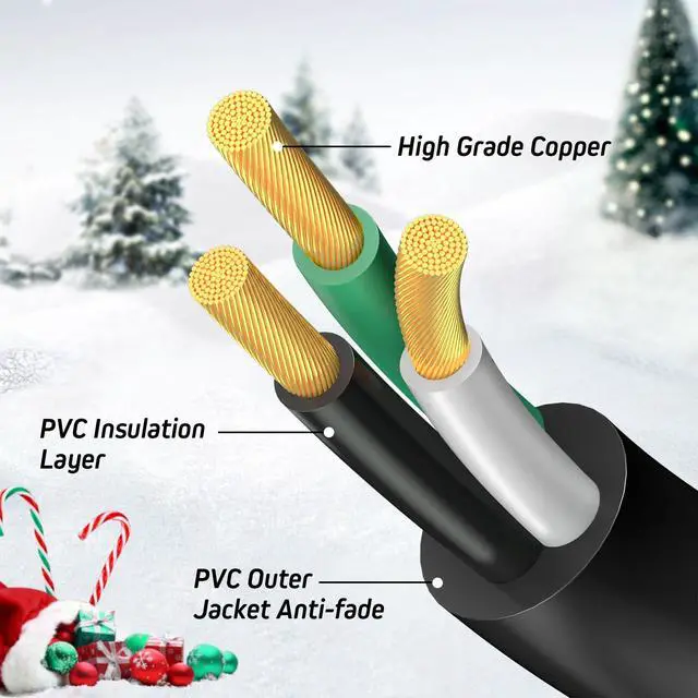 The Cord is 100% copper wire with excellent conductivity, high-resistance PVC jacket is extremely tough and can resist tearing, abrasion, moisture and Snowy day.