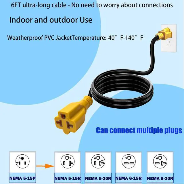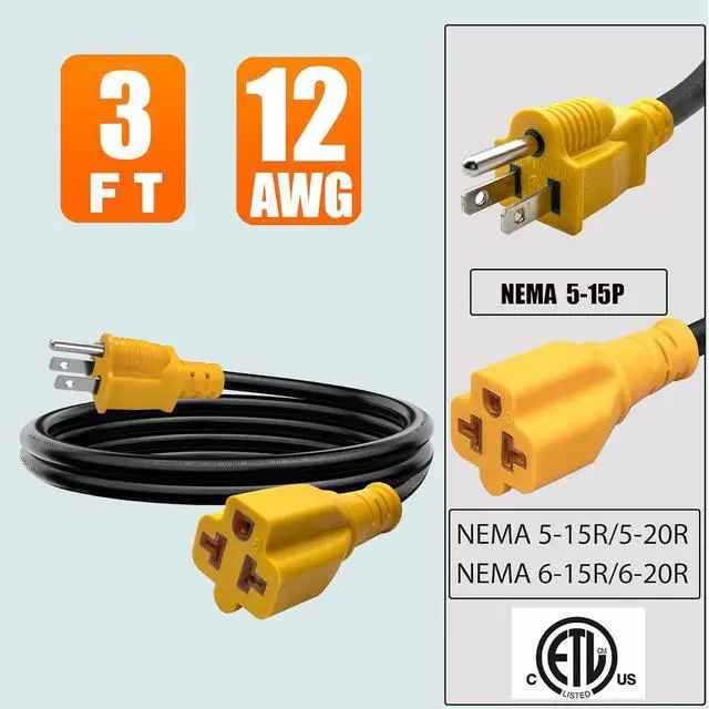 ![Alt view image 5 of 7 - 3Ft 15 Amp Household to 20 Amp AC Power Adapter Cable,12AWG [4-in-1] NEMA 5-15P to 5-15R,5-20R,6-15R,6-20R T Blade Adaptor,15 A 125V to 20 A 250V AC Extension Cord](https://c1.neweggimages.com/productimage/nb640/C5JMD2603230LSZGR89.jpg)