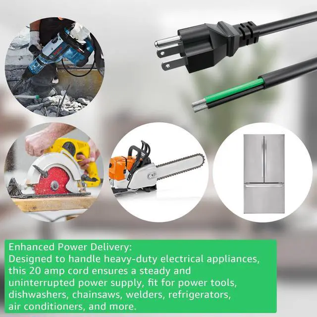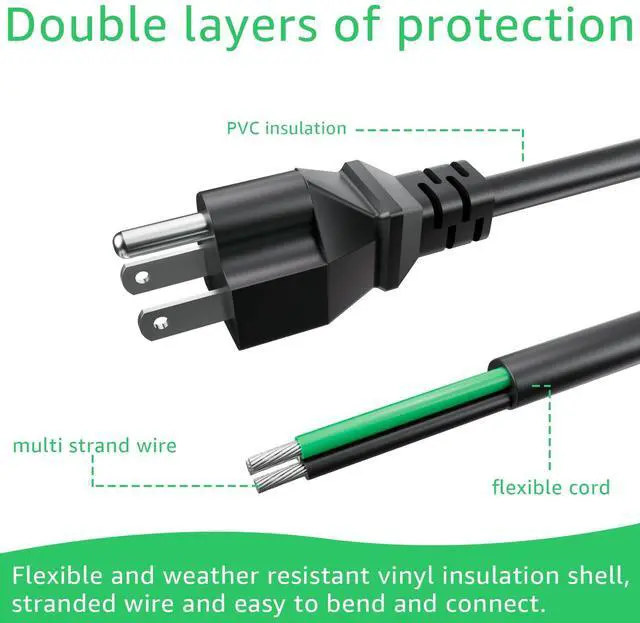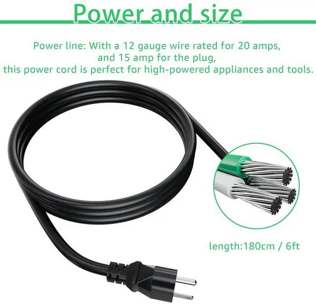 12 Gauge 3 Prong Heavy Duty Replacement Power Supply Cord Cable 110V 115V 120V Pigtail, Fit for household appliances, Power Tools, water heater,refrigerators, air conditioners, and more 12 AWG 3 Conductor Wire Cable