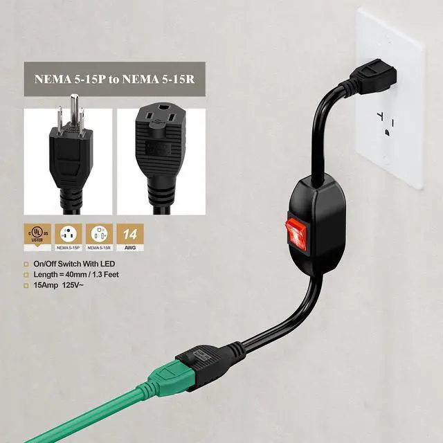 . Nema 5-15P 3 Prong Male to Nema 5-15R 3 Prong Female AC receptacle