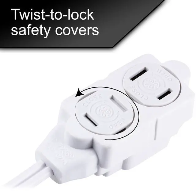 GE 12 Ft Extension Cord, 3 Outlet Power Strip, 2 Prong, 16 Gauge, Twist-to-Close Safety Outlet Covers, Perfect for Home, Office or Kitchen, White, 51954