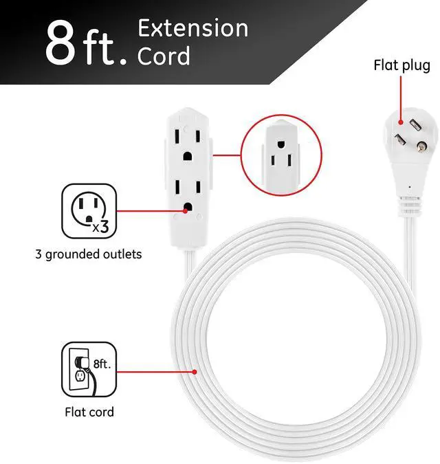A 8ft. long power cord is perfect for your desk lamp, portable fan, laptop, phone charger, vacuum cleaner, alarm clock and other household electronics that need a little extra length.