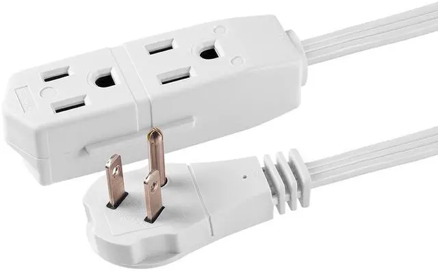 Keep furniture and media close to the wall with the low-profile flat plug at the end of this outlet extender. The angled plug allows for this extension cord to be plugged into the receptacle without blocking the other outlet.