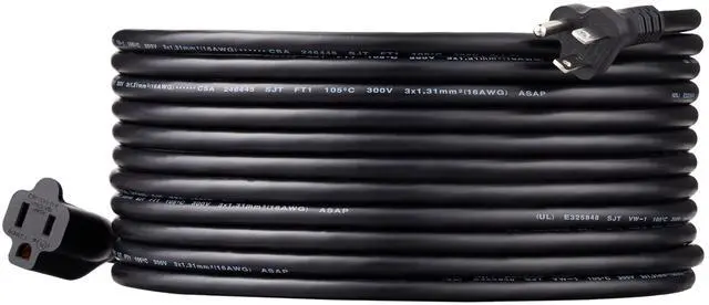 This 25 Ft power extension cord is made by Amazon Basics and features a 1-Pack style with tile material. It supports a voltage of 125 volts and an input current of 13 amps. The cable is Black in color and is UL listed. It comes with a Male-to-Female connector and does not require batteries.