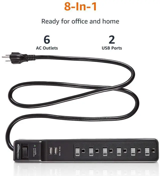 Ideal for protecting your computers, communication devices, data lines, and more, the power strip includes 6 outlets and 2 USB ports.